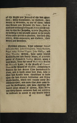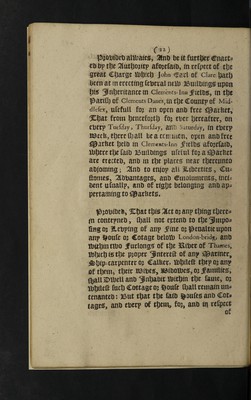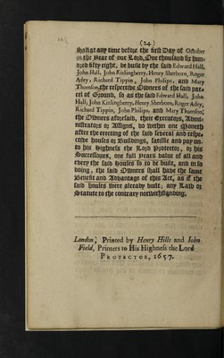 Credit: An Act for the preventing of the multiplicity of buildings in and about the suburbs of London, and within ten miles thereof. At the Parliament begun at Westminster the 17th day of September, An. Dom. 1656. Source: Wellcome Collection.