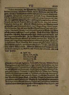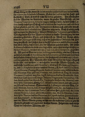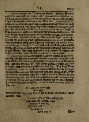 ![1030_ c*ßenn Demnach Die QiBunDe fhppurirct, unD Da$ contundicte leparitet- roorDen, ifl «in gut Mundificativ, um öie ttnreinigfek JU abltergiren unD tiie Ulcera juttuefnen, aufeulegen. <£s f>aben einige Praftici im brauch'Dafcfie in Der erffcett <35etbinDung Die üon Der Ä’ugel ermecEfe«£)i« fee iu corrigiten, ein Liniment aue £alcE,9)hicb ober ©chmanD mit #0* nig »ermifchet, brauchen, fo Doch nicht allejett nötl>ig ifl: ifi eö aber no* f» „ ~ , . . -... fei, Calcis viv. 511J. Mellis defpum. @cfrmanbana5i|L mifee* appHcir es mit weichen <2BieEen; «$ wirb Eaum über brep ober hier ©tu«« öen Drauf liegen gelafen. . v. «rvv, _ Vulnus venenatum unb malignum, etrte gtffctgetlttb bofeWUlt* fe, cictchiehct mit einem mit Qiifft angemachten Inltrument oDer öom Wiid) unö $Si§ giftiger Spiere. 2Benn Denn nun eine 'äßunbe Durch «ctöifftete Waffe« ober (Bewehr gegeben, Da ifi §lei§ an juwenben. Daß Die giftige Virulenz auSgejogen werDe, Deswegen applicire man cm Cataolafma auOTheriac, gcfochtcn3wiebdn,3iegem£ot(),ol.Scorpion. ftmia, <2Badbö Je. ober muh DaS Emplaltrum magnetic. Angel. Sal. ober au* beS Guidonis Emplaitrum Don biefer Defcription: Afxfoetid. Galban. Myrrhe Piper. Opoponac. , Sagapen. Suiphur. ana §ß# Menth. §]. Calaminth. §j- ftercor. Anat, columbin. ana^ij. ©kGummata werben in 2Betn diffolvirct, Die übrigen Ingredientiaa* ber mit ol. Hyperic. oermifchet 8c £ Emplaftr. 3ntierltch brauche matt Darbe« Alexipharmaca, alü acet. deft. mit Therme, ober elea. diafcord. FracaPor. tina.Bezoardic. fpirit. theriacal. camphorat. t diaphoretic. bezoardic.mineral.Myrrh.6cc. nachflehenbO Wirb bk SSBunb« methodo - con-](https://iiif.wellcomecollection.org/image/b30550002_1044.jp2/full/800%2C/0/default.jpg)