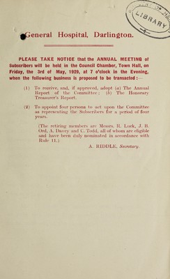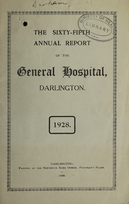 Credit: Annual report of the General Hospital, Darlington : 1928. Source: Wellcome Collection.