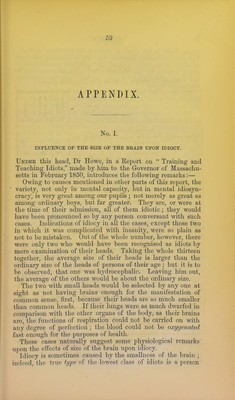 On the causes of idiocy : being the supplement to a report by Dr. S.G. Howe and the other commissioners appointed by the Governor of Massachusetts to inquire into the condition of the idiots of the Commonwealth, dated February 26, 1848 : with an appendix.