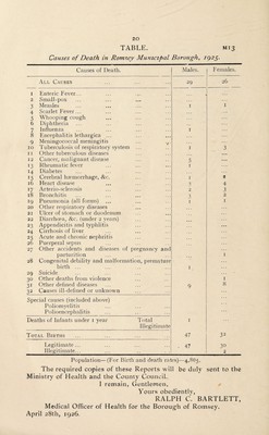 Credit: [Report 1925] / Medical Officer of Health, Romsey U.D.C. Source: Wellcome Collection.