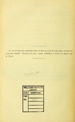 Credit: Dixième Congrès International d'Opthalmologie, Lucerne, 13-17 septembre 1904 : compte rendu publié par le Comité d'Organisation, avec le concours du Dr J. Gonin. Source: Wellcome Collection.
