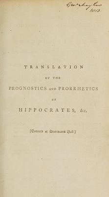 - Hippocrates. Prognostics. English