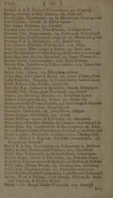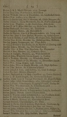 Credit: Kent's directory. For the year 1794. Containing an alphabetical list of the directors of companies ... in the cities of London and Westminster, and the borough of Southwark / [Henry Kent]. Source: Wellcome Collection.