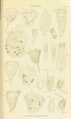 Credit: Histoire naturelle des zoophytes : Infusoires, comprenant la physiologie et la classification de ces animaux, et la manière de les étudier à l'aide du microscope / par Félix Dujardin. Source: Wellcome Collection.