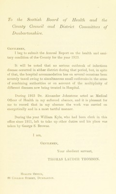 [Report 1923] / Medical Officer of Health, Dunbarton County Council.