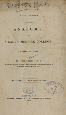 Introductory to the course on anatomy : in Geneva Medical College, session 1842-43 / by James Webster.