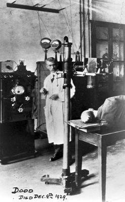 M0017805: Painting of an autopsy, 1905 / M0017806: X-ray examination being carried out by Dodd