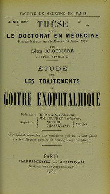 Credit: Étude sur les traitements du goitre exophtalmique / par Léon Blottiére. Source: Wellcome Collection.