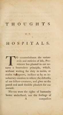 Thoughts on hospitals / With a letter to the author, by Thomas Percival.