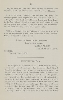 [Report of the Medical Officer of Health for Romford].
