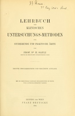 Lehrbuch der klinischen Untersuchungs-Methoden : für Studierende und praktische Ärzte / von H. Sahli.
