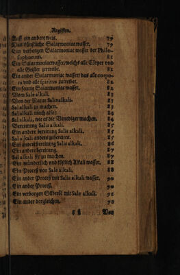 ![Ee 8276 8K 28528539 Regiſter alles deß / was hierinnen begriffen. E e = et Das erſte Theil, | 2 a ren des erſten Argument / I damit die Chymia wird angefochten. fol t 10 J. Widerlegung des andern Arguments. fol. g 1005 E rzehlung etlicher Philo fophorum, ſo von die nl; ſer Kunſt etwas geſchrieben. 7 Erklerung etlicher woͤrter / die inn der Kunſt ges braucht werde / vnd vocabula artis heiſſen. 26 Charaktere oder Zeichen / mit welchen die ſtebener⸗ mul a Mal: ley Metallen bedeutet werden. 28 UA: Andere Zeichen / aus vier gar alten 2 wine Buͤchern. Wie die ſtcke von der Ruf Chymia in deen i Boch nach einander folgen ſollen. 33 rd Das erte heil von Salzen. 37 le] Salz it ein Schluͤſſel der Kunſt. 37 ce Von allen dingen Halen wochen. 7 mie, Vom Stein der Weiſen. 35 „Vom gemeinem Sal mer Sat ſey. 42 a Die Natur vnd eig ſchafft des Salzes. 44 Hi Von der Philofophorum Salarmonigc, 45 1. Von der Hüſſiateit der Philofopfen. ETAGE | Sapoder Weifen, 46 1 „Deäterliche ding von Salzen. 44 n Sale gemmz» A* 47 5 F Don](https://iiif.wellcomecollection.org/image/b32988953_0002_0411.jp2/full/800%2C/0/default.jpg)