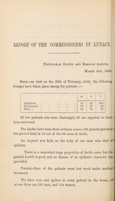 The eighth annual report of the state of the United Lunatic Asylum for the county and borough of Nottingham, and the fifty-third of the original institution, formerly the General Lunatic Asylum, 1863.