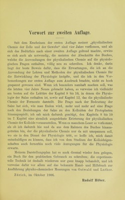 Physikalische Chemie der Zelle und der Gewebe / von Rudolf Höber.