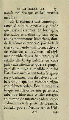 Disertación medicohistorica sobre la elefancia, y su distincion de la lepra; con noticias acerca del escorbuto, fuego de S. Anton, peste, lue venerea y otros dolencias cutáneas inmundas, y la historia fisica de los tiempos y climas / Traducida del frances é ilustrada con notas [by R.G].