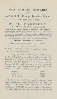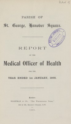 [Report of the Medical Officer of Health for Hanover Square, The Vestry of the Parish of Saint George].