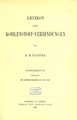 Credit: Lexikon der Kohlenstoff-Verbindungen. Supplement III, Umfassend die Litteraturjahre 1903 und 1904 / von M.M. Richter. Source: Wellcome Collection.