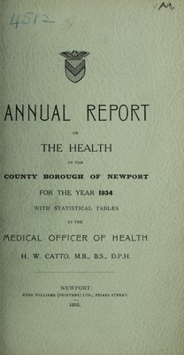 Credit: [Report 1934] / Medical Officer of Health, Newport (Gwent) County Borough. Source: Wellcome Collection.