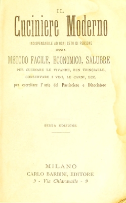 Il cuciniere moderno : indispensabile ad ogni ceto di persone, ossia metodo facile, economico, salubre per cucinare le vivande, ben trinciarle, conservare i vini, le carni, ecc., per esercitare l'arte del pasticciere e diacciatore.