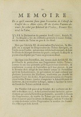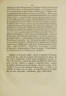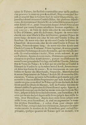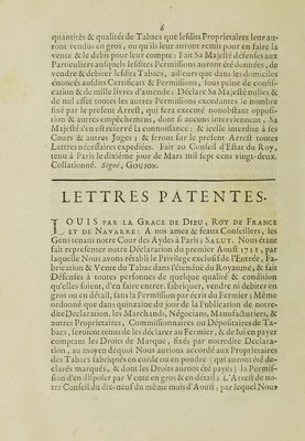 Credit: Arrest ... du 10 mars 1722 et lettres patentes ... Portant reglement pour la ferme generale du tabac ... Registrées ... 28 mars 1722. Source: Wellcome Collection.