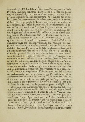 Arrest ... du 10 mars 1722 et lettres patentes ... Portant reglement pour la ferme generale du tabac ... Registrées ... 28 mars 1722.
