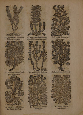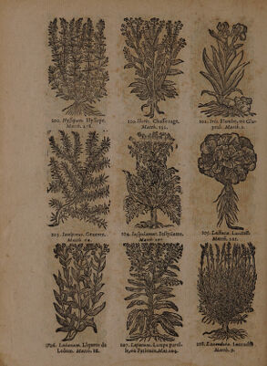 ![FA À ; < = 4 TN \ + “4 SN 7 1 > 100. Hyffopum. Hyope. 101. Iberis. Chafferage, 102. Iris. Flambe, ou Gla-. Matth. 278. à Matth. 332. yeul. Matth.1. HE (< HETA AR TES LA) 77, 4, M + ; À à ce d + ci À ; | Tan F / 103. Iuniperus. Genevre. 104. Iufquiamns. lufquiame. 10. Laëluca. Laictuës Matth. 64. Matth 197. 4 Matth. 221, MA À LE PACE LENS SU SZ S 2 D si EEE LE SZ ee RZ < à Pi STARS VS W \] AV \L { & Vi où iT06. Ladanum, Liqueur de 107. Lapatum. Lampe parel- Ledum. Matth. 88 le,ou Patience.Myr.104. Matth, 9](https://iiif.wellcomecollection.org/image/b33275336_0003_0840.jp2/full/800%2C/0/default.jpg)