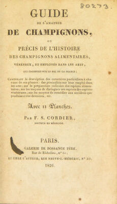 Guide de l'amateur de champignons, ou précis de l'histoire des champignons alimentaires, vénéneux, et employés dans les arts, qui croissent sur le sol de la France / [François Simon Cordier].