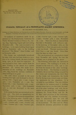 Guaiacol, topically, as a prophylactic against diphtheria / by Solomon Solis-Cohen.