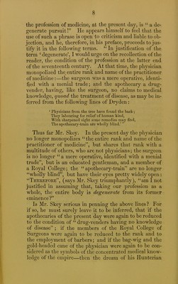 Credit: Is the practice of medicine in 1850 a degenerate pursuit? : being a review of Mr. Skey's Hunterian oration, and of the new regulations of the Apothecaries' Society / by a practitioner. Source: Wellcome Collection.