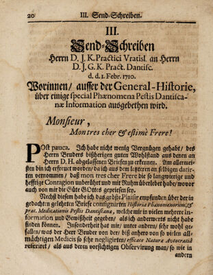 Einiger Medicorum Send-Schreiben, von der A. 1708 in Preussen, und A. 1709 in Dantzig grassireten Pestilentz. Item: von der wahren Beschaffenheit des Brechens und des Schweisses ... nebst einem Anhange: von der A. 1708 zu Rosenberg in Schlesien, und A. 1709 zu Fraustadt in Pohlen erlidtenen Pestilentz; ausgefertiget und mit einem Supplement: von denen An. 1710 nach der Pest in Dantzig observireten Kranckheiten, item: Von denen Beulen und Blasen in der dieses Jahr in Wien grassireten Seuche ... vermehret / von Joh. Kanold.