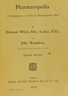 Credit: Pharmacopedia : a commentary on the British pharmacopœia, 1898 / by Edmund White and John Humphrey. Source: Wellcome Collection.