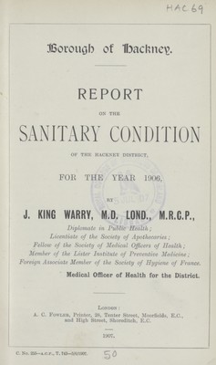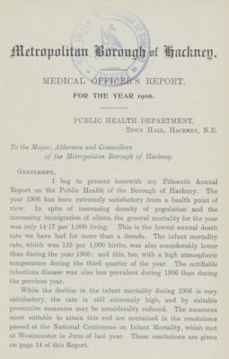 Credit: [Report of the Medical Officer of Health for Hackney]. Source: Wellcome Collection.