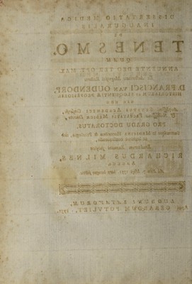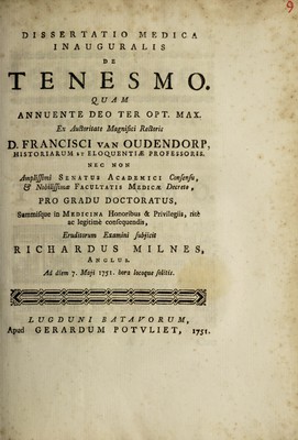 Credit: Dissertatio medica inauguralis de tenesmo ... / Eruditorum examini subjicit Richardus Milnes. Source: Wellcome Collection.