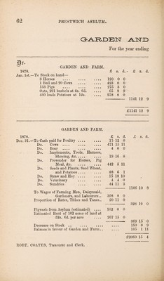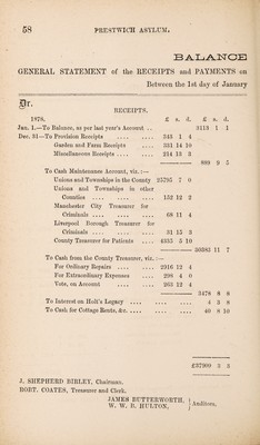 Credit: Reports of the County Lunatic Asylum at Prestwich : presented to the Court of Adjourned Annual Session holden at Preston, 26th December, 1878, with the accounts of the receipts and payments of the treasurer of the said asylum. Source: Wellcome Collection.
