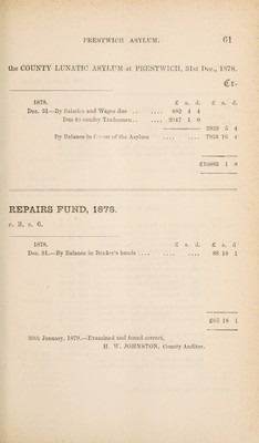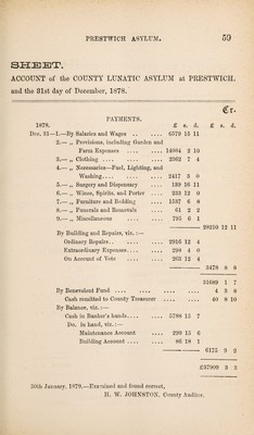 Reports of the County Lunatic Asylum at Prestwich : presented to the Court of Adjourned Annual Session holden at Preston, 26th December, 1878, with the accounts of the receipts and payments of the treasurer of the said asylum.