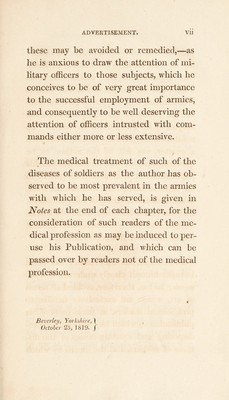 Practical observations on the means of preserving the health of soldiers in camp and in quarters. With notes on the medical treatment of several of the most important diseases ... in the British Army during the late war / [Edward Thornhill Luscombe].