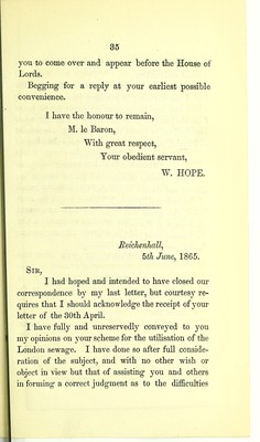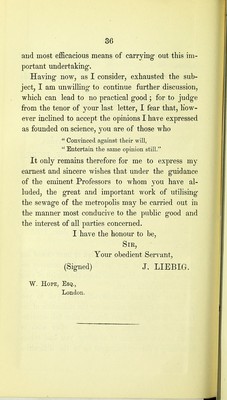 The sewage of the metropolis : a letter to the Right Hon. the Lord Mayor / from W. Hope ; inclosing correspondence with Baron Liebig.
