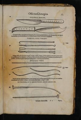 Credit: Chirurgiae universalis opus absolutum / Ioannis Andreae a Cruce ... In quo quorumcunque affectuum universo corpori humano obvientium, et ad chirurgi curam spectantium, notio, praedictio, atque curatio perspicua methodo narrantur, & tam medicorum insignium auctoritate, quàm experimentorum approbatione confirmantur. Addita insuper est officina chirurgica, in qua nempe instrumenta omnia aliaqúe chirurgico convenientia suis figuris delineata expressaque cernuntur. Source: Wellcome Collection.