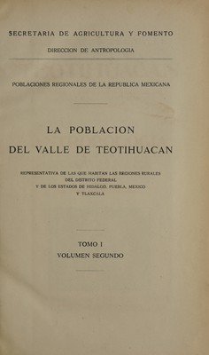 La población del Valle de Teotihuacán : el medio en que se ha desarrollado ; su evolución étnica y social ; iniciativas para procurar su mejoramiento / por la Dirección de Antropología, siendo director de las investigaciones, Manuel Gamio.