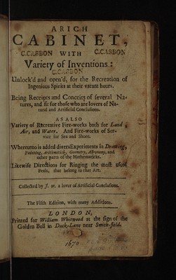 Credit: A rich cabinet, with variety of inventions: unlock'd and open'd ... Being receipts and concerts of several natures ... / Collected by J. W., a lover of artificial conclusions. Source: Wellcome Collection.