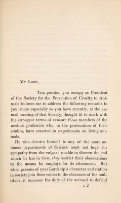 Credit: Remarks on the use of vivisection as a means of scientific research : in a letter addressed to the Earl of Caernarvon, President of the Society for Preventing Cruelty to Animals / [Richard Jameson]. Source: Wellcome Collection.