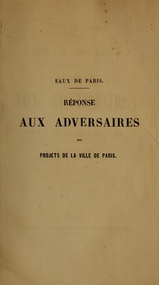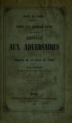 Eaux de Paris : lettre a un conseiller d'état pour servir de réponse aux adversaires des projets de la ville de Paris / par Robinet.