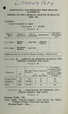 [Report 1965] / Medical Officer of Health, Barnstaple & Bideford Port Health Authority.