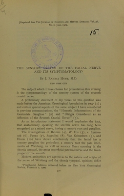 The sensory system of the facial nerve and its symptomatology / by J. Ramsay Hunt.