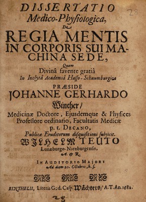 Dissertatio medico-physiologica, de regia mentis in corporis sui machina sede / [Wilhelm Teuto].