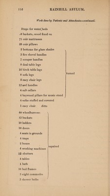 Credit: The reports of the County Lunatic Asylums at Lancaster, Prestwich, and Rainhill : presented to the Court of Adjourned Annual Session held on the 5th of January 1859 with the accounts of the receipts and payments of the respective treasurers of the said asylums. Source: Wellcome Collection.