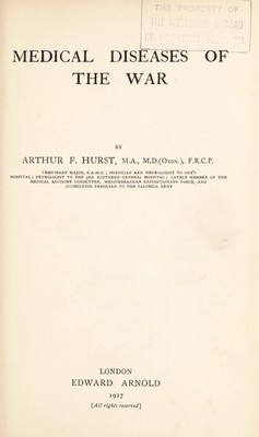 Credit: Medical diseases of the war / by Arthur F. Hurst. Source: Wellcome Collection.