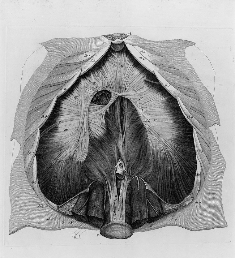 M0017117: Diagram of the human diaphragm, 1743. Public Domain Mark. Source: Wellcome Collection.