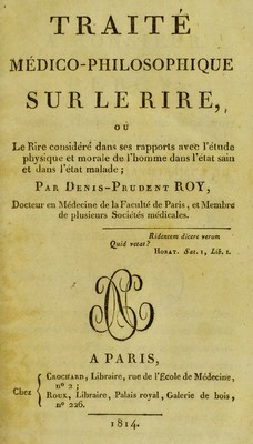 Traité médico-philosophique sur le rire; ou, le rire considéré dans ses rapports avec l'étude physique et morale de l'homme dans l'état sain et dans l'état malade / par Denis-Prudent Roy.